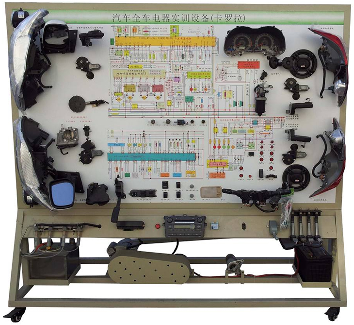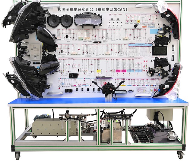 汽車電氣設備實訓室。汽車電器設備實訓室包含有汽車燈光系統(tǒng)、車載網(wǎng)絡系統(tǒng)、全車電器系統(tǒng)、汽車啟動系統(tǒng)、汽車空調(diào)系統(tǒng)、全車線路試驗臺、等實訓教學設備。該實訓室可以承擔《汽車構造》、《汽車電器設備》、《汽車電控系統(tǒng)》、《汽車檢測與診斷》等課程的實踐教學任務。可以用于研究、分析全車電器系統(tǒng)、燈光系統(tǒng)、儀表系統(tǒng)等電器設備的電路及功能。利用這些系統(tǒng)進行實踐教學,使學生熟悉汽車電器的結構和工作原理,掌握各個系統(tǒng)的基本組成電路,掌握主要電路的檢測方法和系統(tǒng)的故障特征,從而具有一定的檢測和調(diào)校能力。